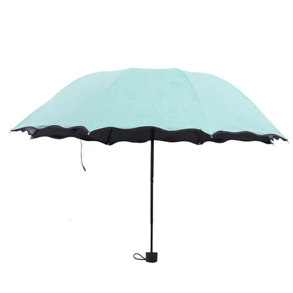 Тройной складной зонтик с узором в виде водных цветов, дождевой солнцезащитный зонтик, женский зонтик, однотонный зонтик высокого качества Para