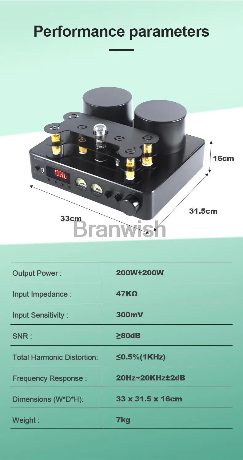 Особенности: Он имеет корпус из алюминиевого сплава + электронную трубку для лихорадки, двойной тороидальный трансформатор, оригинальную парную трубку Toshiba, переменный высокий и низкий тон, интеллектуальное вентиляторное охлаждение;