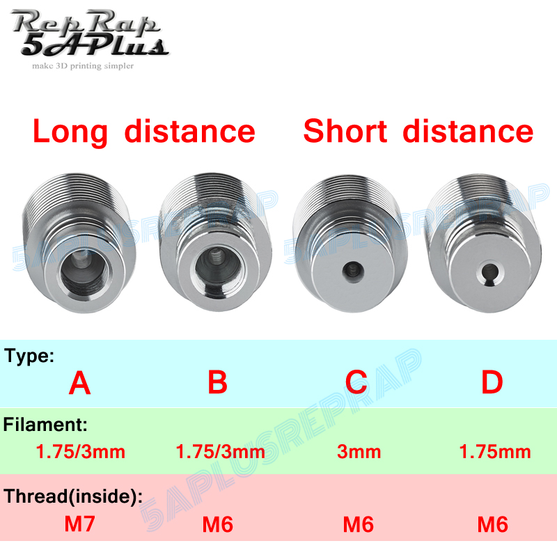 Тип A подходит 1.75 мм или 3.0 мм нити (универсальная), дальнее расстояние