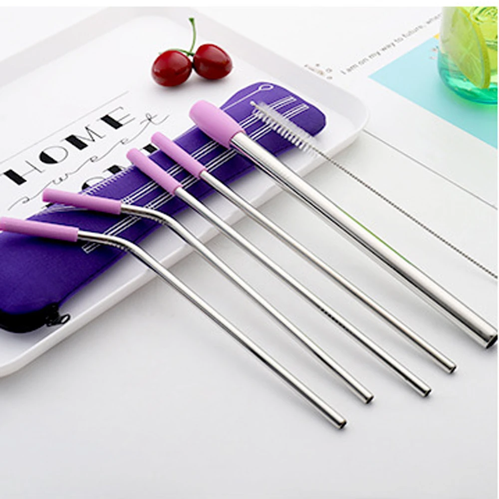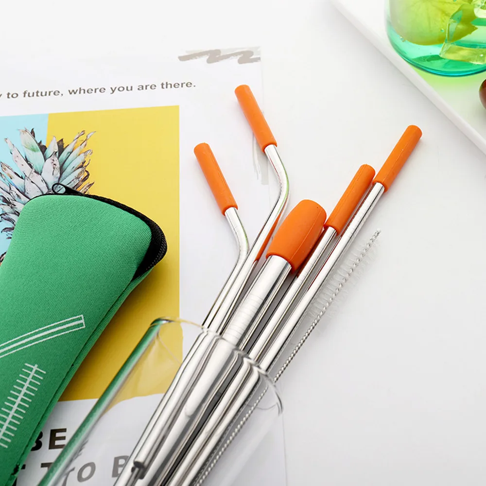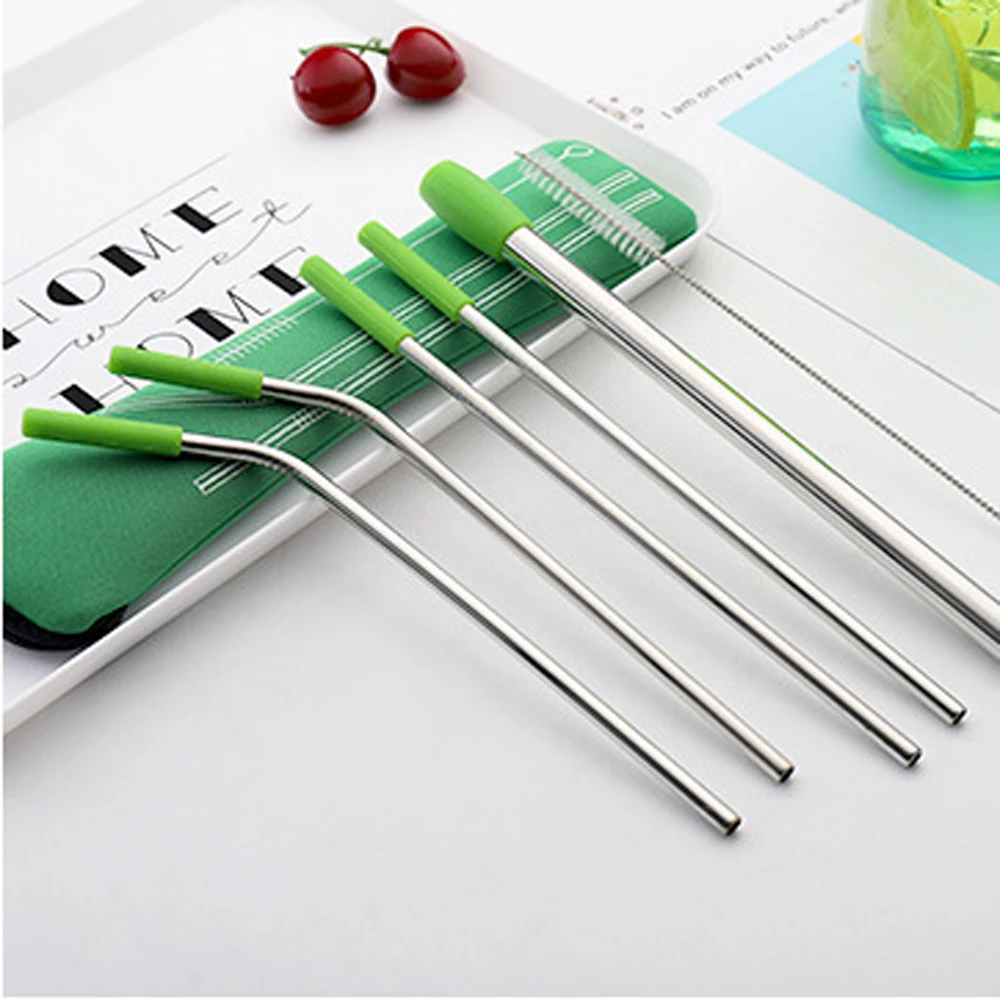 Трубочка из нержавеющей стали с пылесборником, многоразовая трубочка с силиконовым наконечником для молока, чая, кофе, напитков, прямое локоть, аксессуары для бара