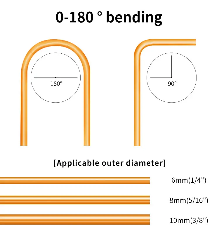 1. Плавный изгиб: вы можете плавно и легко сгибать медь, латунь, алюминий и тонкостенные стали, не обжимая трубку.