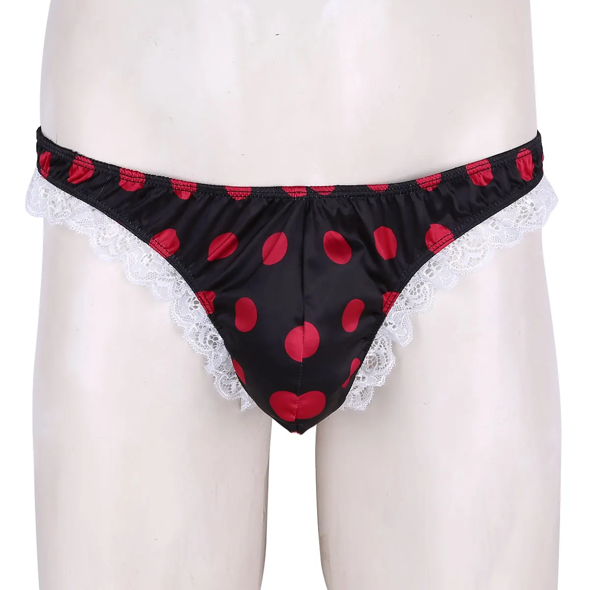 # M-XL, мужское нижнее белье, блестящее, с низкой посадкой, с оборками, кружевное, в горошек, бикини, стринги, нижнее белье