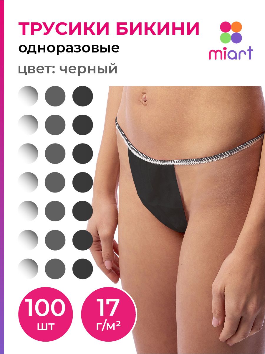 Трусы одноразовые женские черные 100 шт., пакет, трусики бикини для массажа, солярия, эпиляции, косметологических процедур, спанбонд