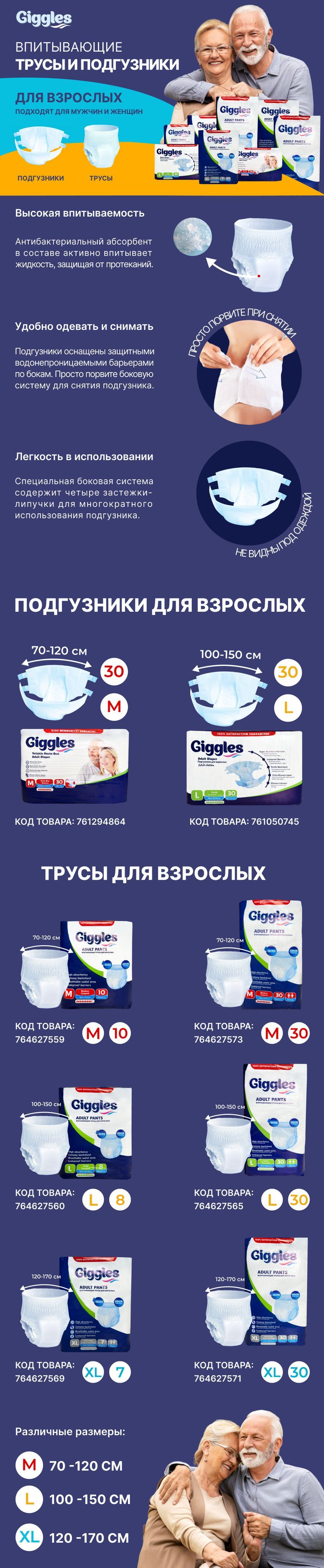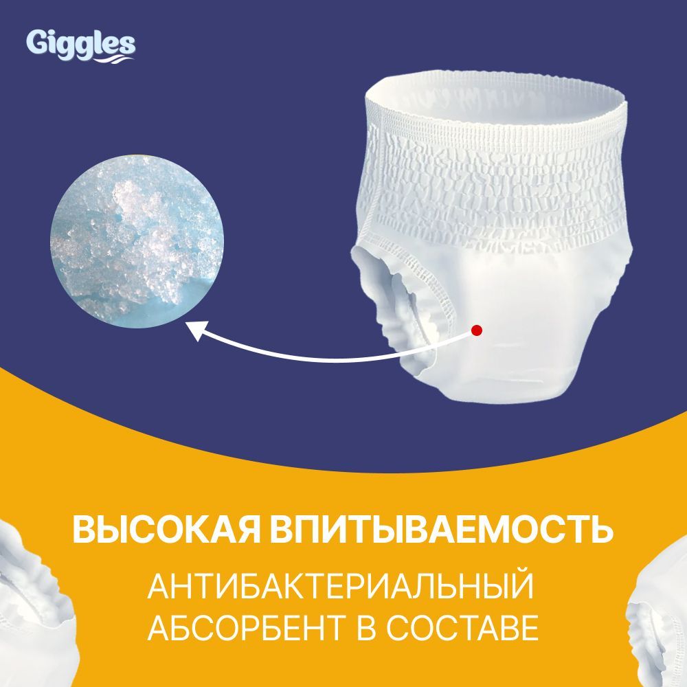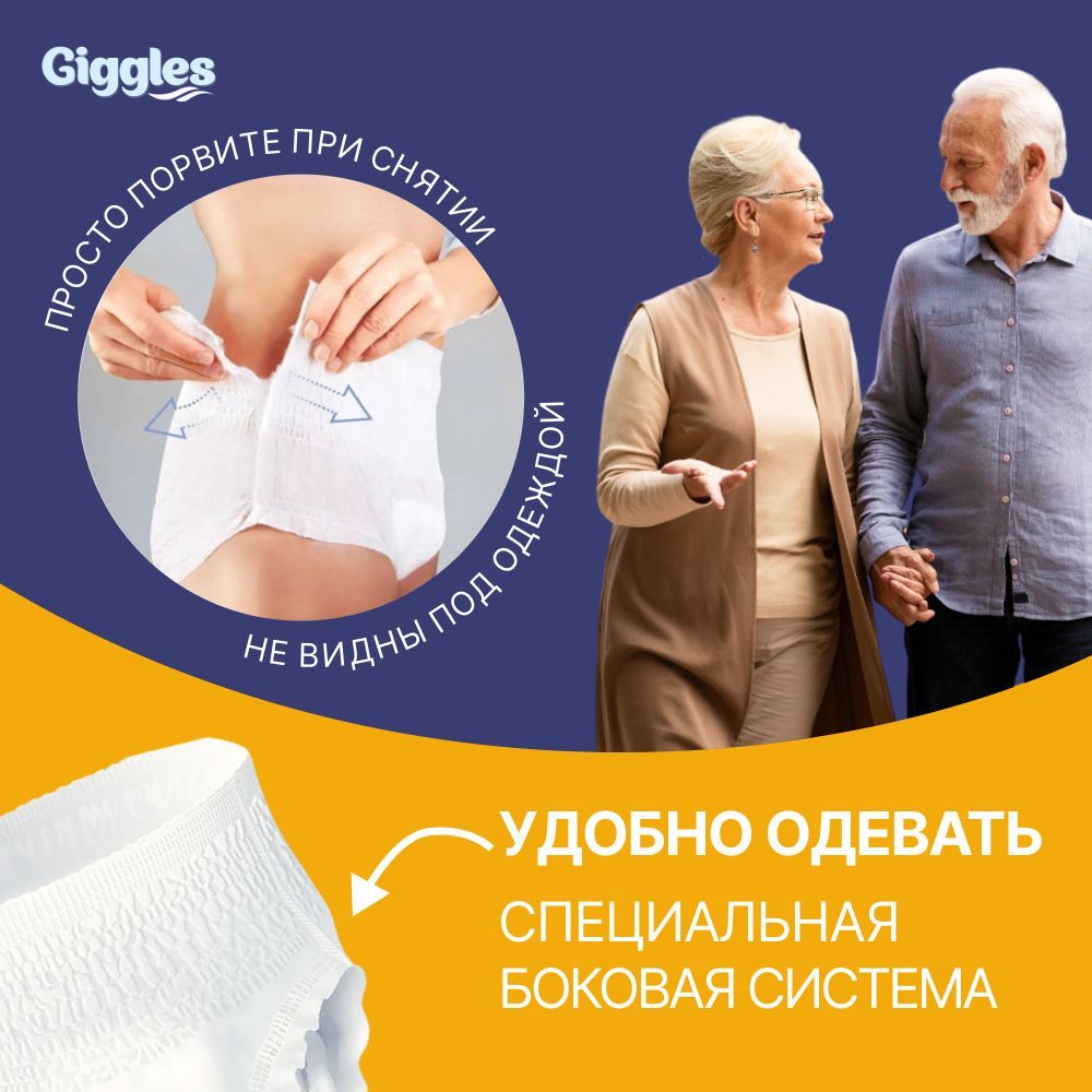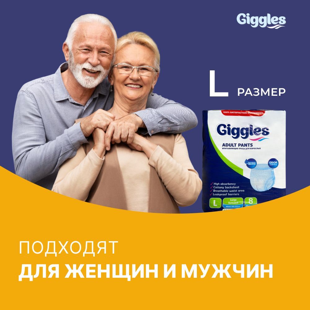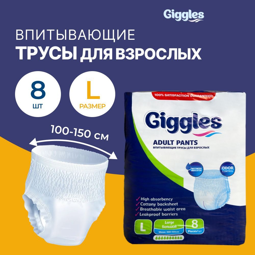 Трусы подгузники для взрослых GIGGLES JUMBO ADULT PANTS LARGE , размер L , обхват талии 100-150 см, Средней степени недержания, 8 шт. в упаковке