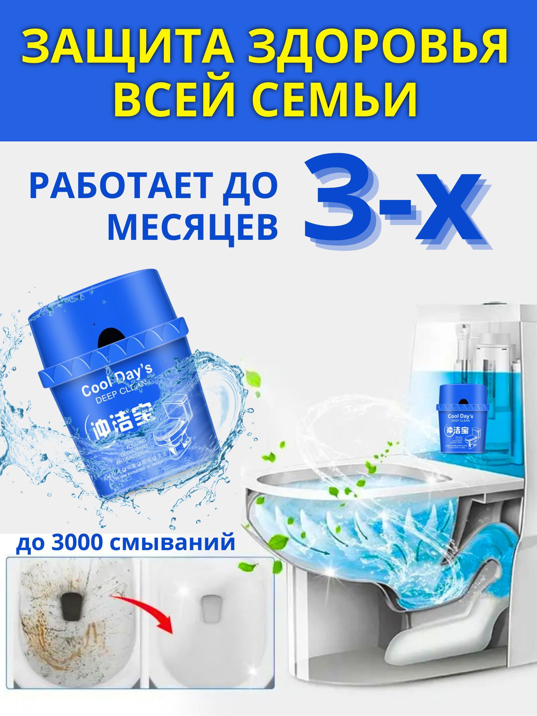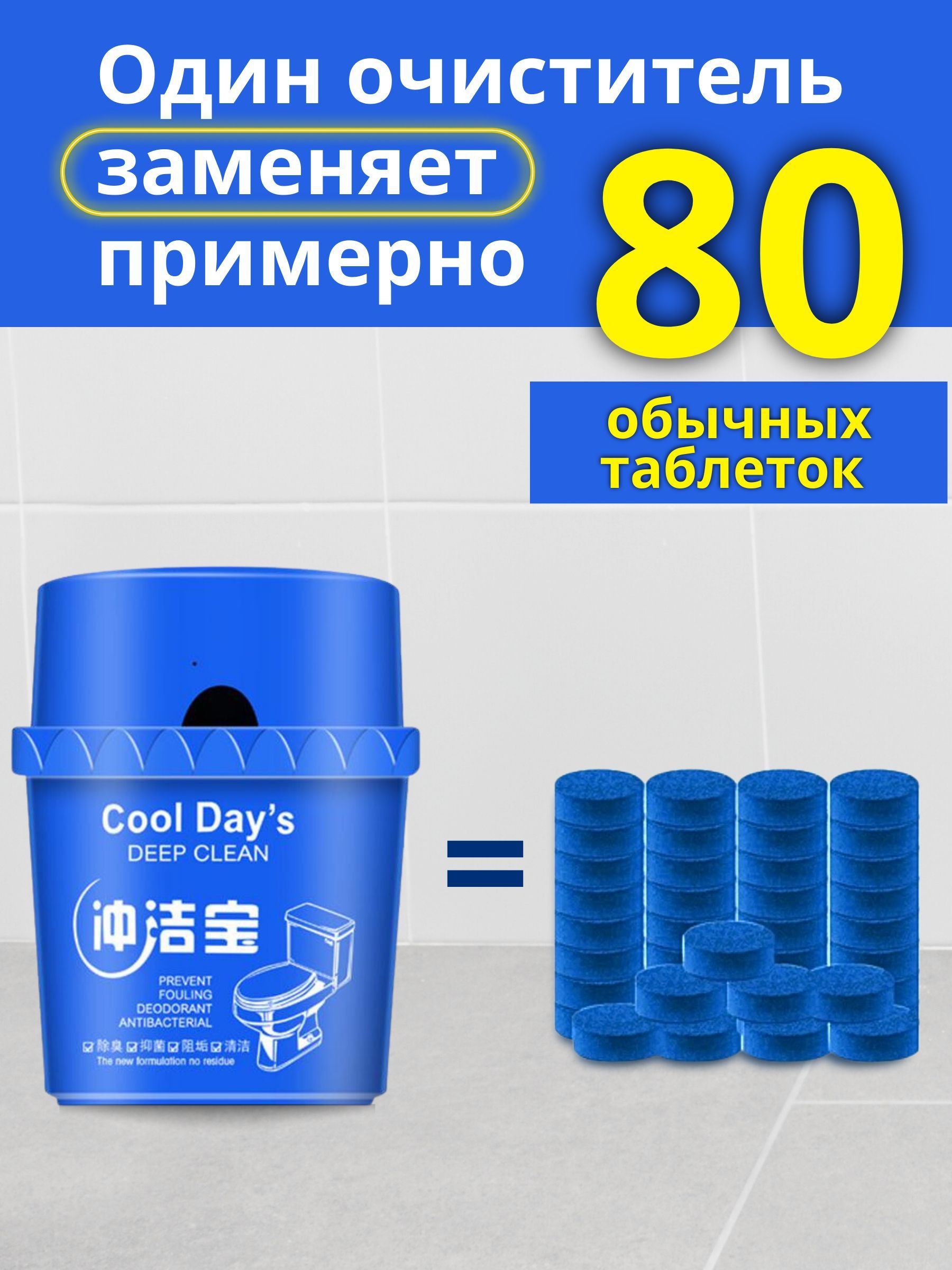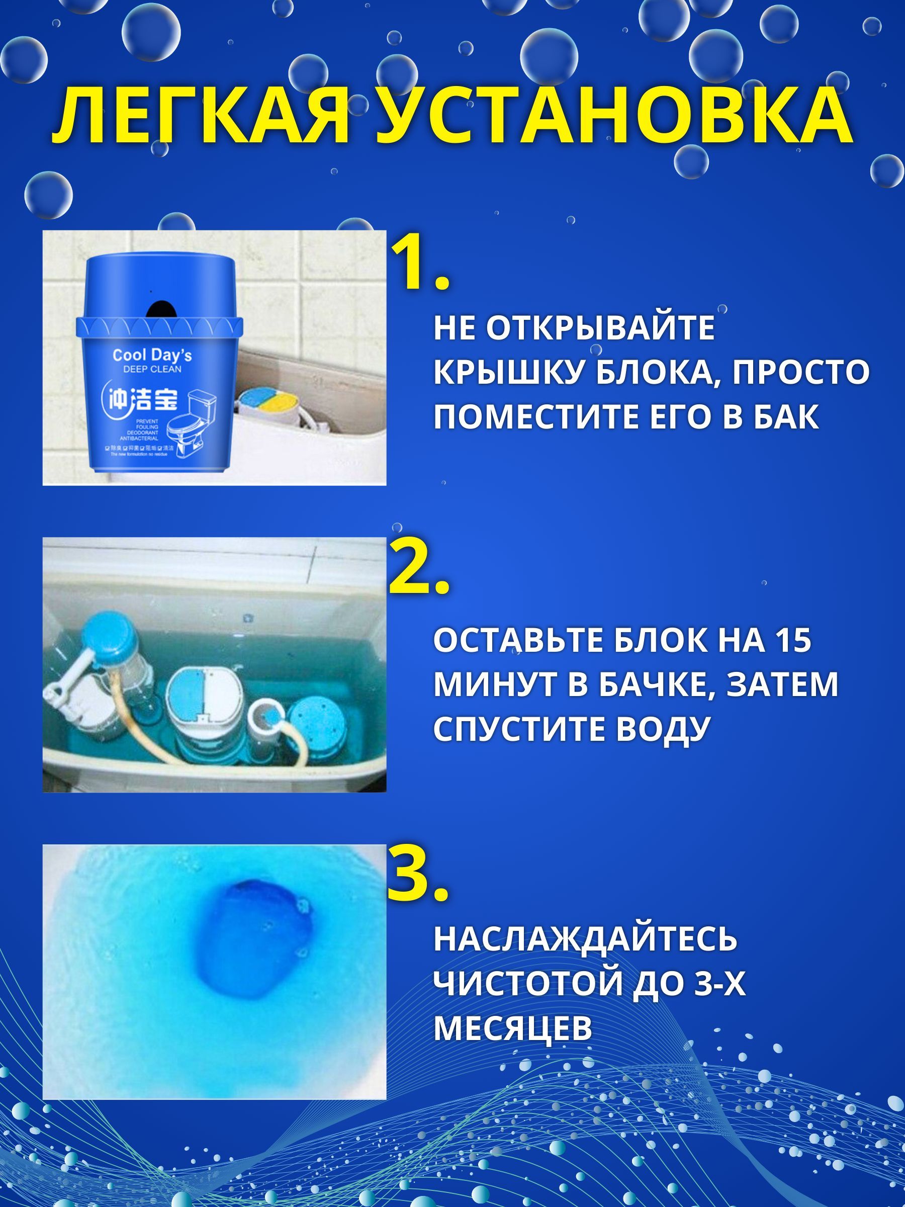 Описание: Мечта, а не просто помощникПредставляем Вам наш новый революционный товар - туалетный блок для унитаза. Благодаря этому современному и уникальному устройству, ваш туалет будет всегда на высшем уровне чистоты, и вам больше не придется беспокоиться о неприятных запахах или появлении накипи. Один блок решает много проблемТаблетки для унитаза в бачок - вот основа этого удивительного средства. Специально разработанная формула не только окрашивает воду, но и обеспечивает очевидную чистоту и свежесть при каждом смывании! Средство для чистки унитаза поможет хозяйке поддерживать чистоту в доме. Все решения, в одном блокеНо это еще не все! Блок для унитаза туалетный также имеет возможность регулировать расход воды, что позволит вам сэкономить на счетах за воду и позаботиться о природных ресурсах. Туалетный блок обеспечивает гигиеническую чистоту, защищает от известкового налёта, обильно пенится, прост и удобен в использовании. Таблетки для бачка унитаза являются экономически выгодным решением и покупкой.