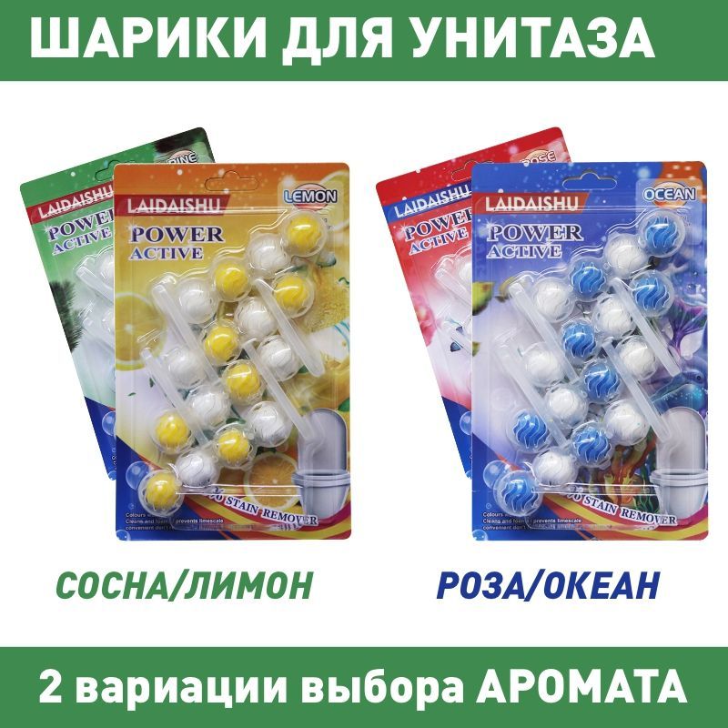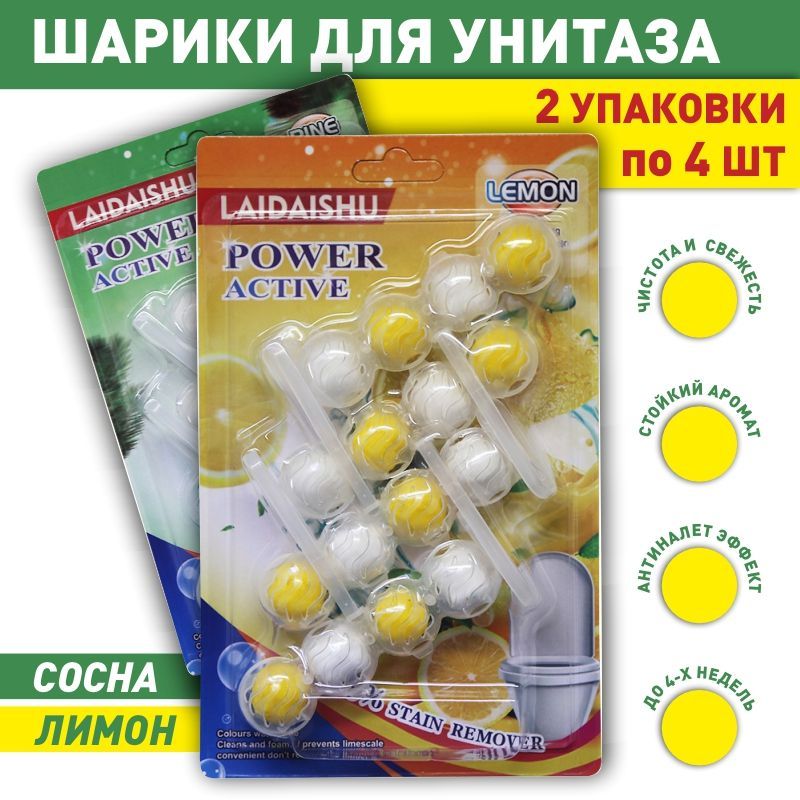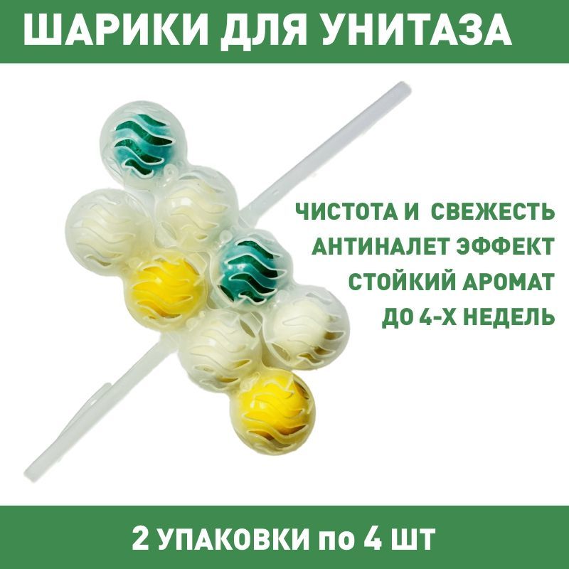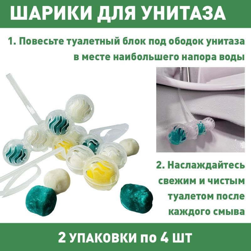 Туалетный блок для унитаза подвесной, шарики для унитаза под ободок, Лимон/Сосна, 2 упаковки по 4 блока