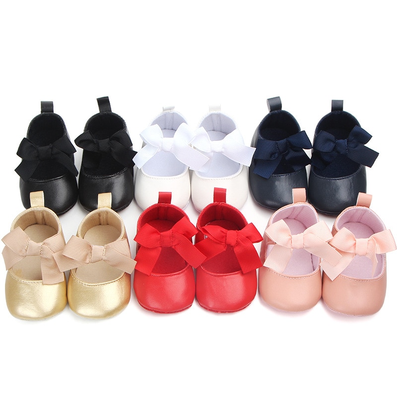 Туфли для маленьких девочек принцессы на мягкой нескользящей подошве однотонные с бантом-бабочкой для маленьких девочек новорожденных пинетки модная обувь