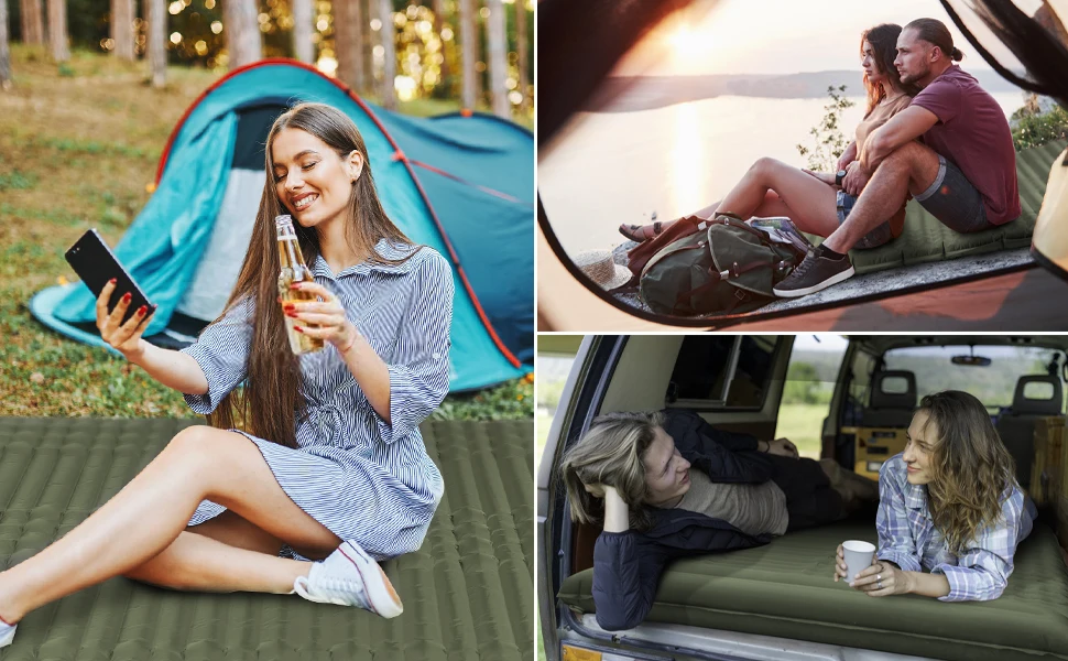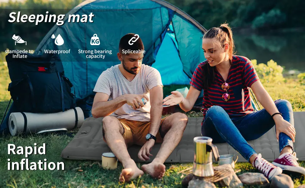 3. Прочный и портативный: сверхтолстый водонепроницаемый 40D нейлон и ТПУ экологически чистые материалы, прочные и износостойкие, делают этот компактный коврик идеально подходит для суровых условий в этой области. Утолщенная пленка гарантирует, что наш Самонадувающийся коврик для кемпинга эффективно проколит и влагоустойчив без утечки воздуха.