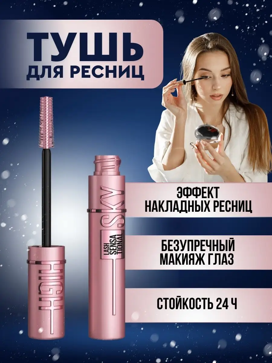Тушь для ресниц черная стойкая подкручивающая удлиняющая