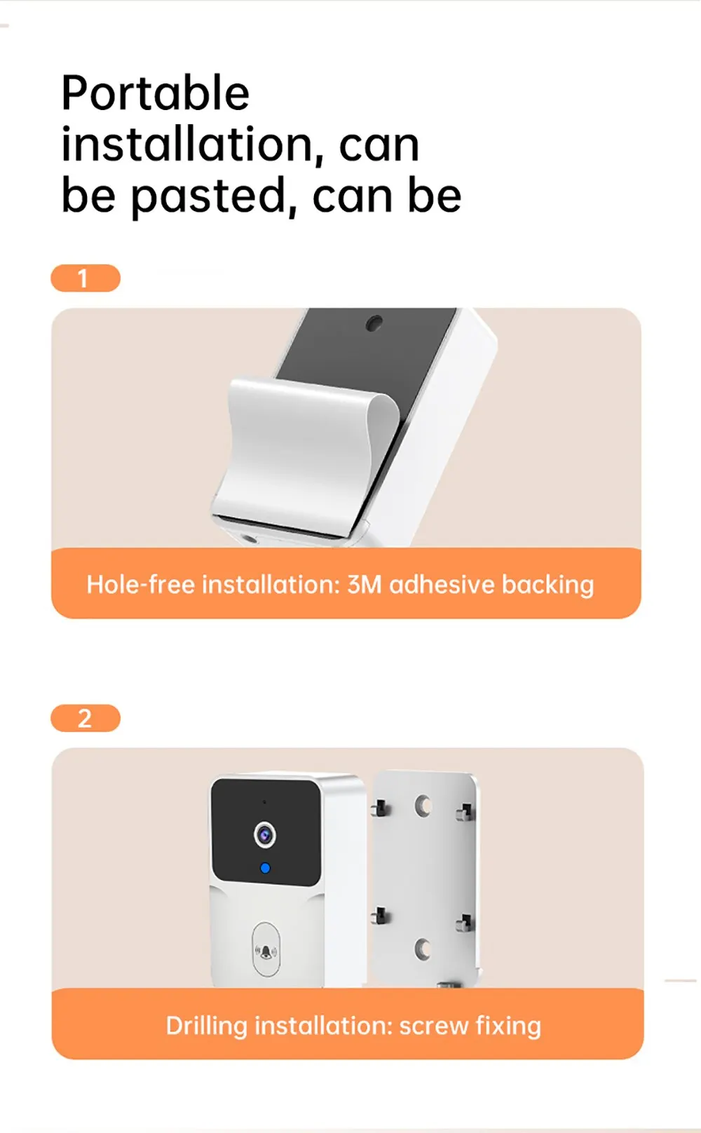 Длительный Режим ожидания: без цикла разборки и зарядки. Встроенный литий-ионный аккумулятор большой емкости, длительный режим ожидания. Дверной звонок питается от встроенной большой батареи, не нужно часто заряжать; и звонок от источника питания USB, простой и удобный в использовании.