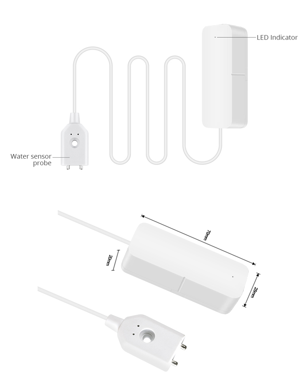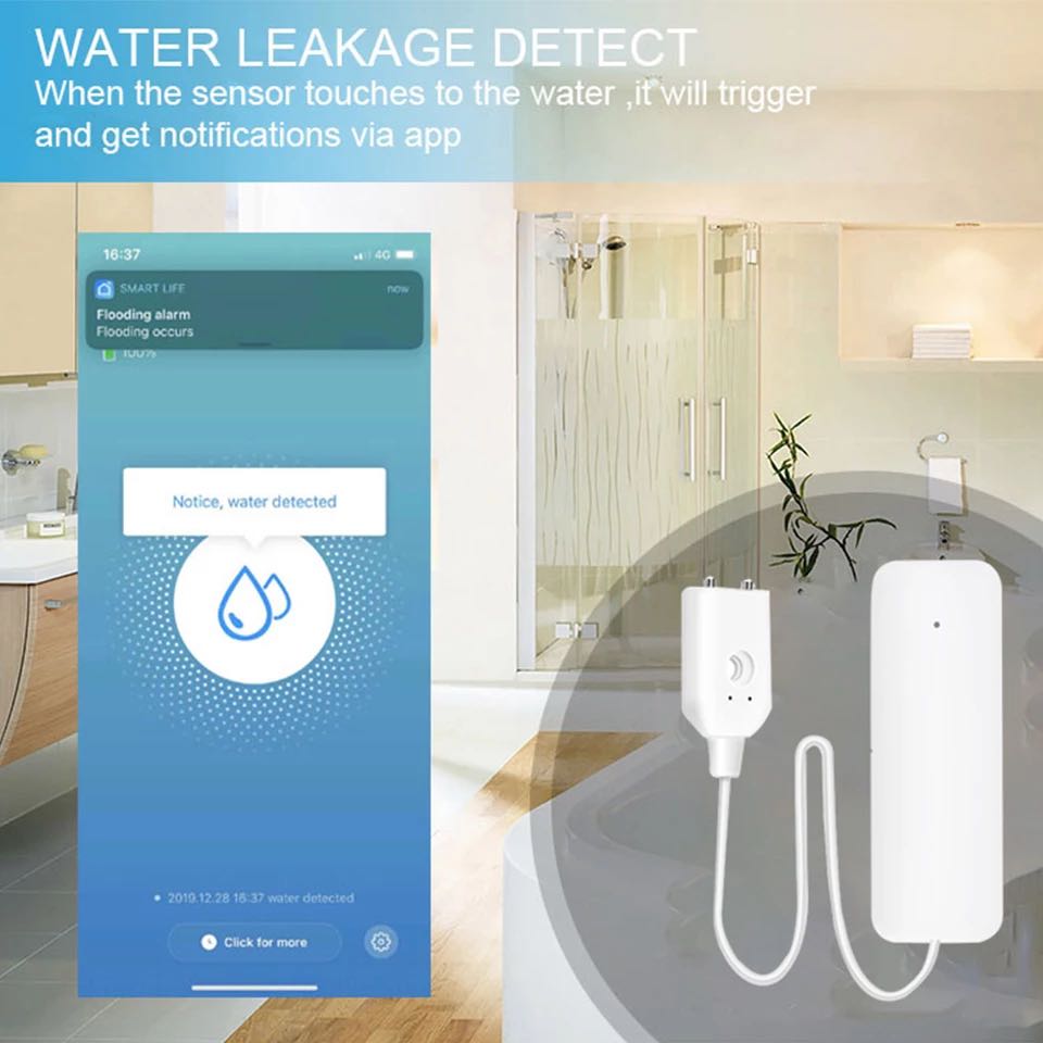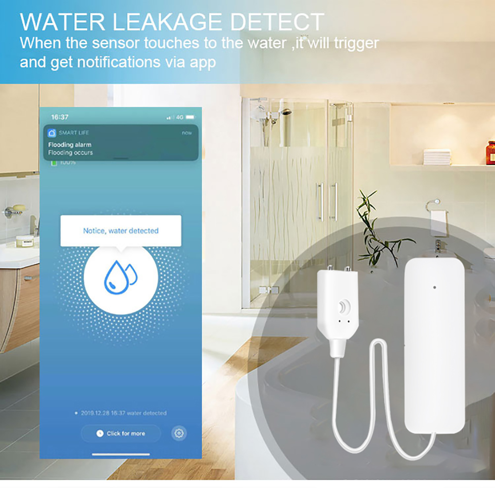 Когда датчик детектора обнаруживает воду, он сразу же предупредит и отправит уведомление в ваше приложение.Подходит для различных мест и различных потребностей.
