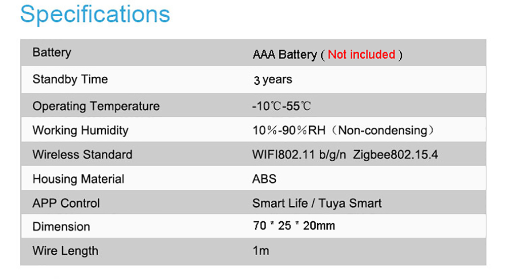 Длительное Время в режиме ожидания, больше беспокойства: низкое энергопотребление, в режиме ожидания до 1 года, не нужно часто заменять аккумулятор, когда батарея низкая, приложение push уведомление, пожалуйста, своевременно Замените аккумулятор.