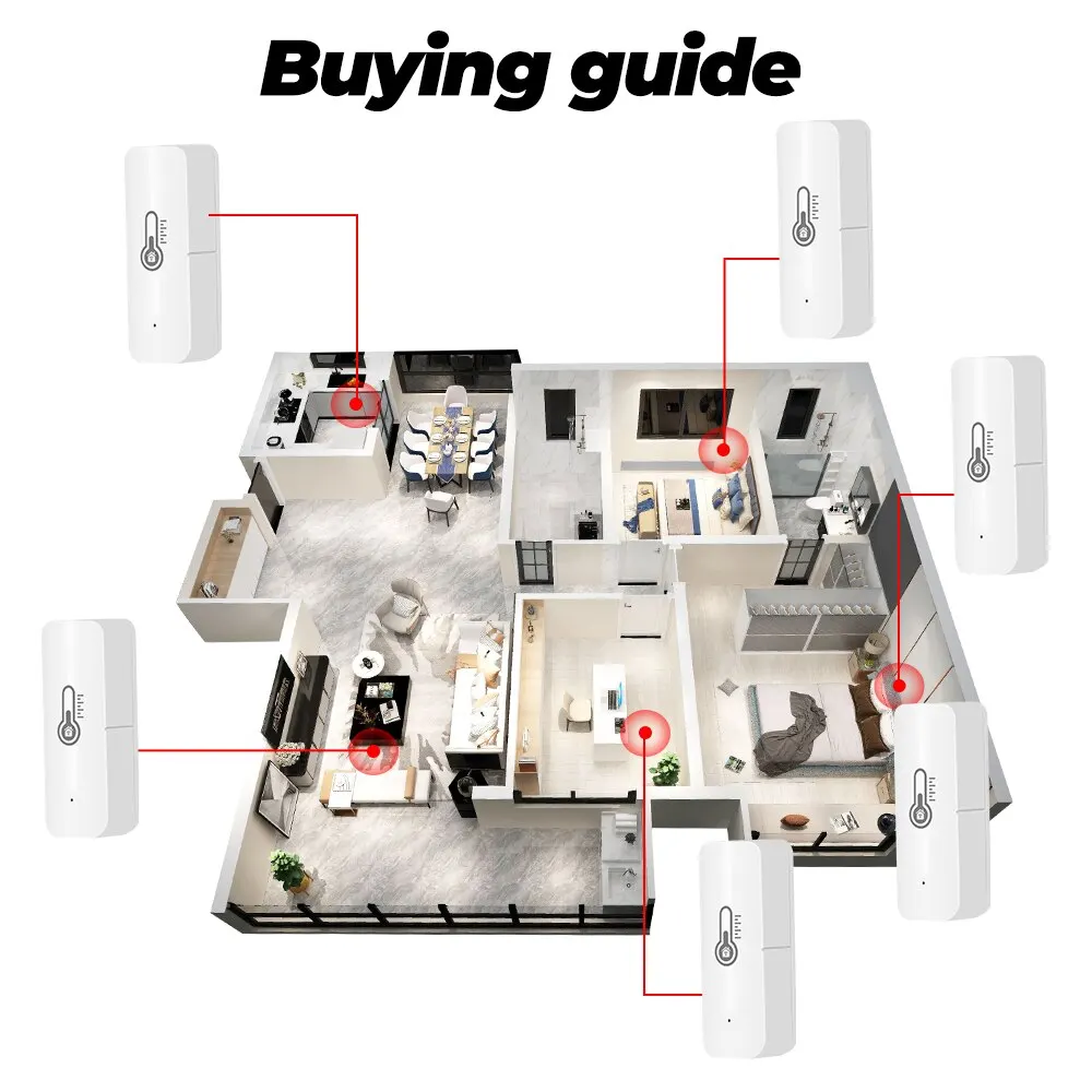 Датчик температуры и влажности можно связать с другими интеллектуальными устройствами в доме, чтобы улучшить Отопление и охлаждение в помещении и сделать ваш дом более комфортным. Конструкция с низким преимуществом для обеспечения длительного срока службы батареи. Когда окружающая среда меняется, вы можете сделать интеллектуальную связь. Например, кондиционер будет включаться автоматически, когда температура в помещении превысит 35 ℃. И увлажнитель будет распылять, когда влажность ниже 20% относительной влажности. (Обратите внимание, что эту функцию необходимо использовать с универсальным инфракрасным пультом дистанционного управления или переключателем WIFI).