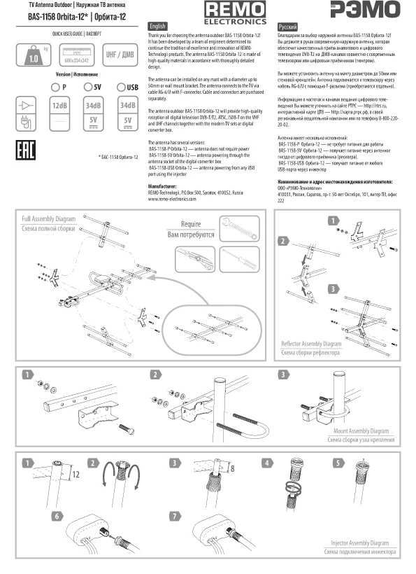 Наружная активная ТВ антенна BAS-1158 Орбита-12 предназначена для приема сигналов цифрового телевидения DVB-T2, а также аналогового телевидения в диапазоне ДМВ. Подходит для совместного использования с цифровыми ТВ приемниками (приставками), предназначенных для приема цифрового телевидения DVB-T2. Выпускается в вариантах не требующем питания и в активном варианте.