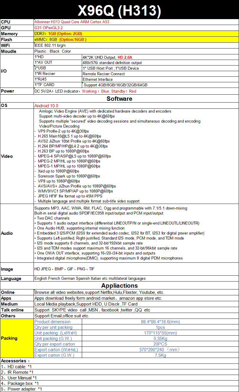 ТВ-приставка Allwinner H313 на Android 10, 2 + 16 ГБ, 4 ядра, Wi-Fi, 1 + 8 Гб