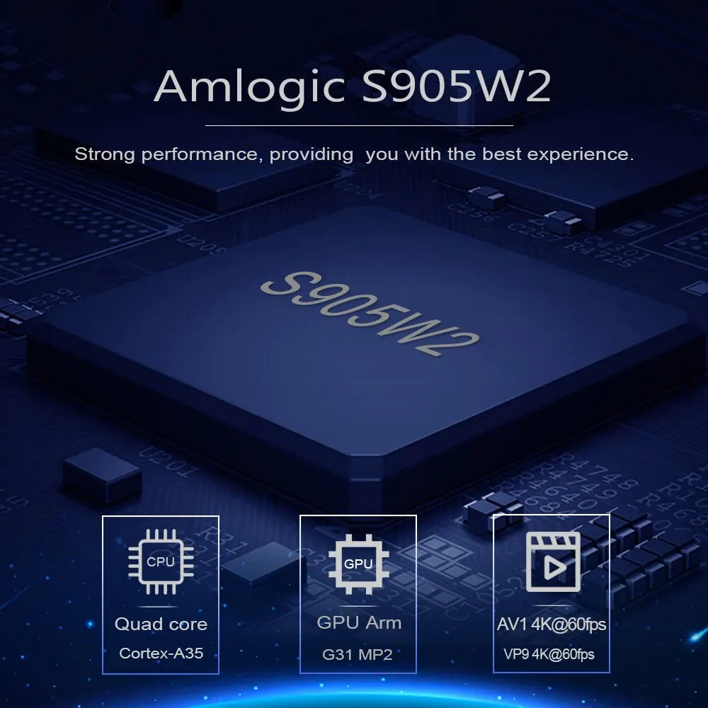 2) Amlogic s905w2 64-битный четырехъядерный ARM®Кортекс А35