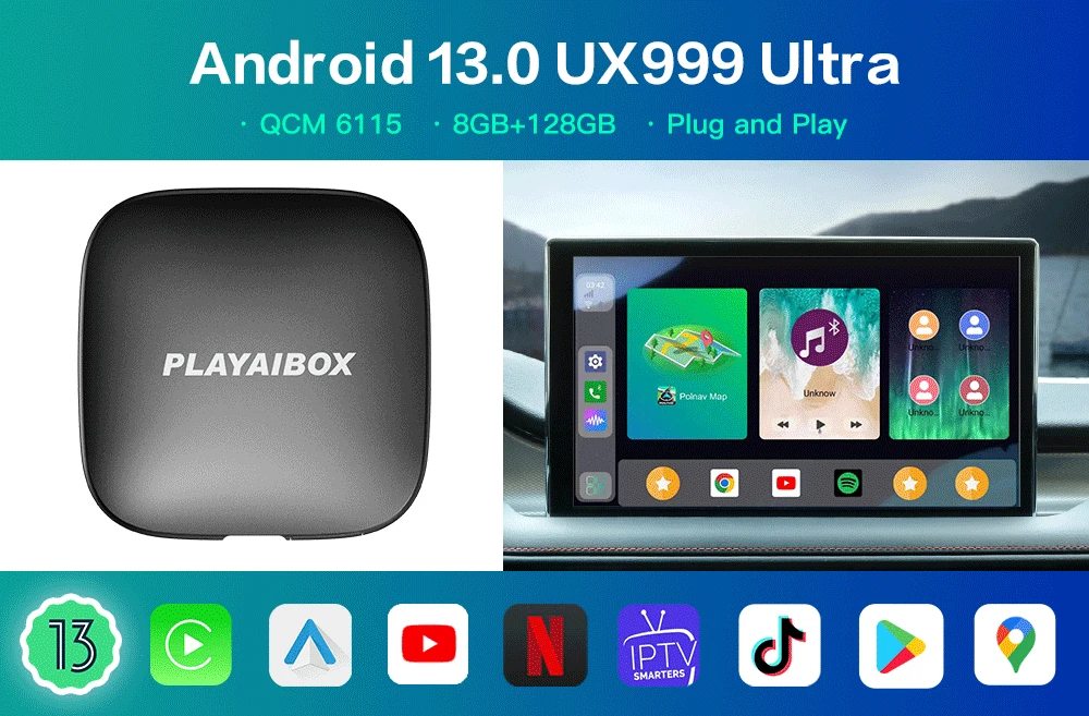 ТВ-приставка Carplay Ai Box Android 13, Netflix, Iptv, spotive, автомобильная Беспроводная приставка Android UX999Ultra QCM662 8 ГБ + 128 ГБ для автомобиля с OEM