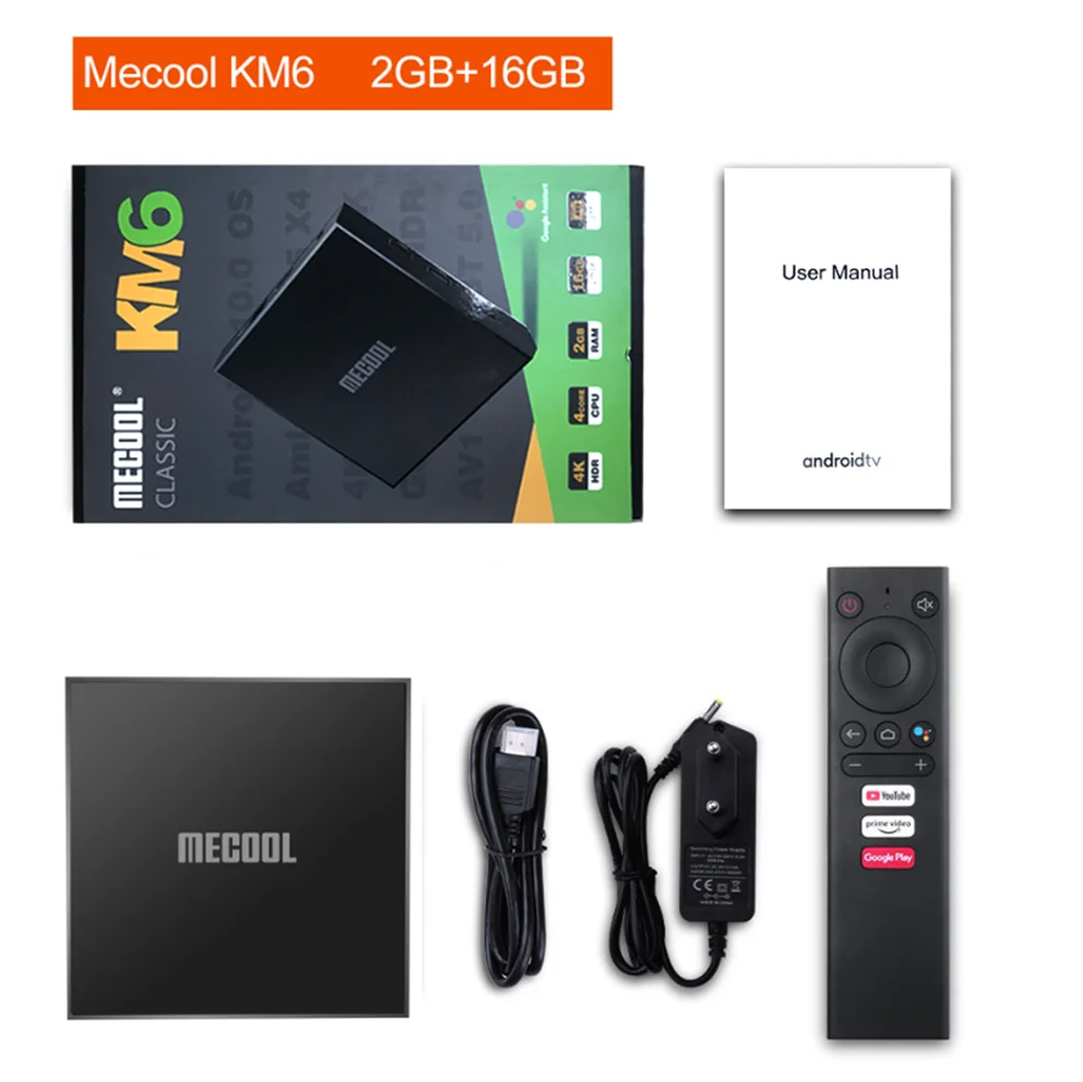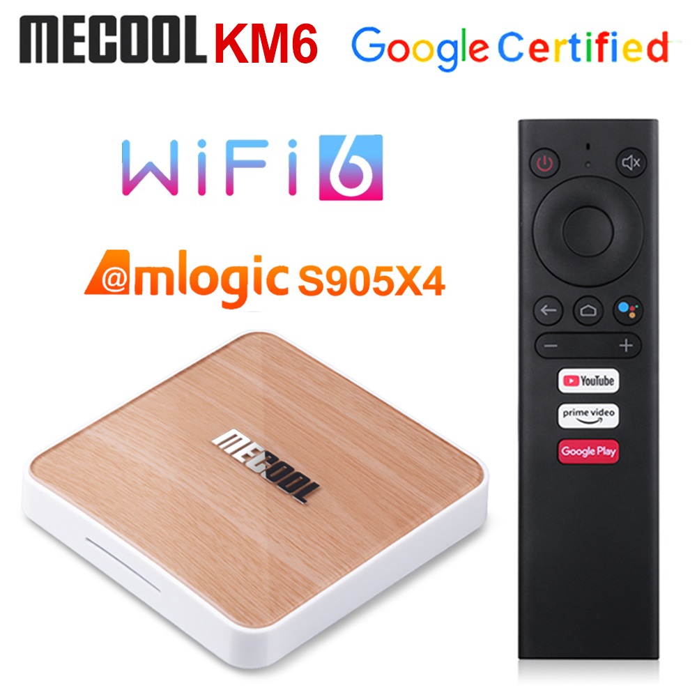 Mecool KM6 Wi-Fi 6 Amlogic S905X4 4 ГБ 32 ГБ 64 ГБ Androidtv 10,0 Сертифицированное Google управление голосовым вводом Поддержка AV1 1000 м BT5.0 ТВ-бокс Android 10 Set Top Box