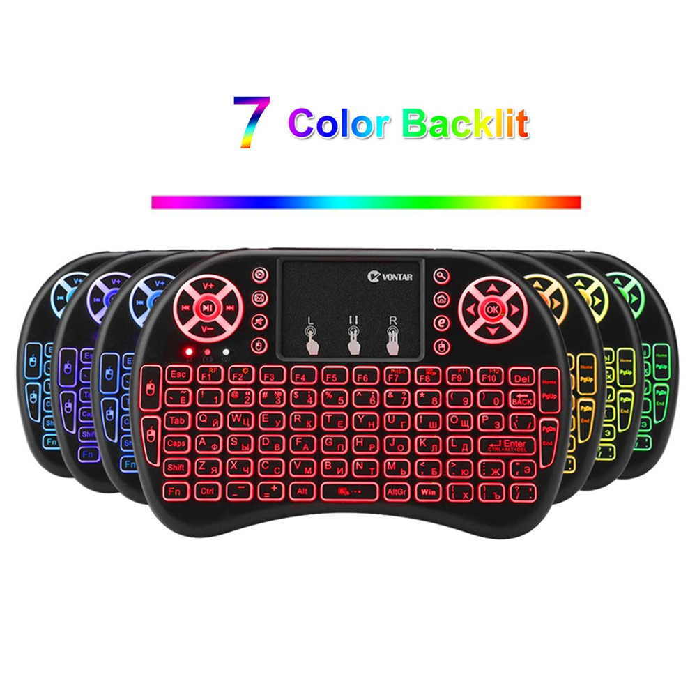 1.Клавиатура i8 с подсветкой из КитаяАнглийский/русский/испанский 3 дополнительных версии, с подсветкой 7 цветов. Только английская версия для склада в ЕС, русская версия для склада в России