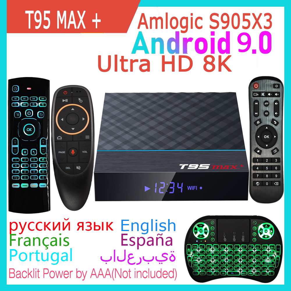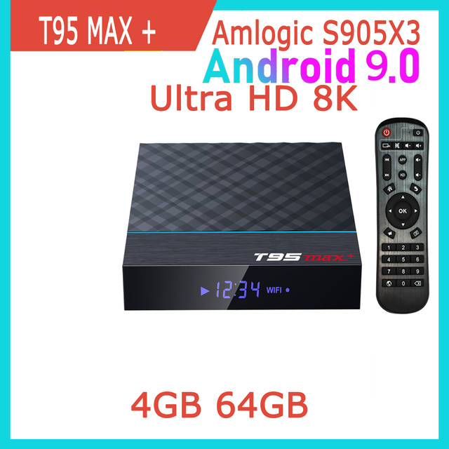 T95 MAX PLUS Amlogic S905X3 четырехъядерный Android9.0 8K HDR LAN 100 м двойной Wi-Fi 2,4 г 5 г BT4.0 ОЗУ 4 ГБ ПЗУ 32 ГБ 64 ГБ Smart TV Box