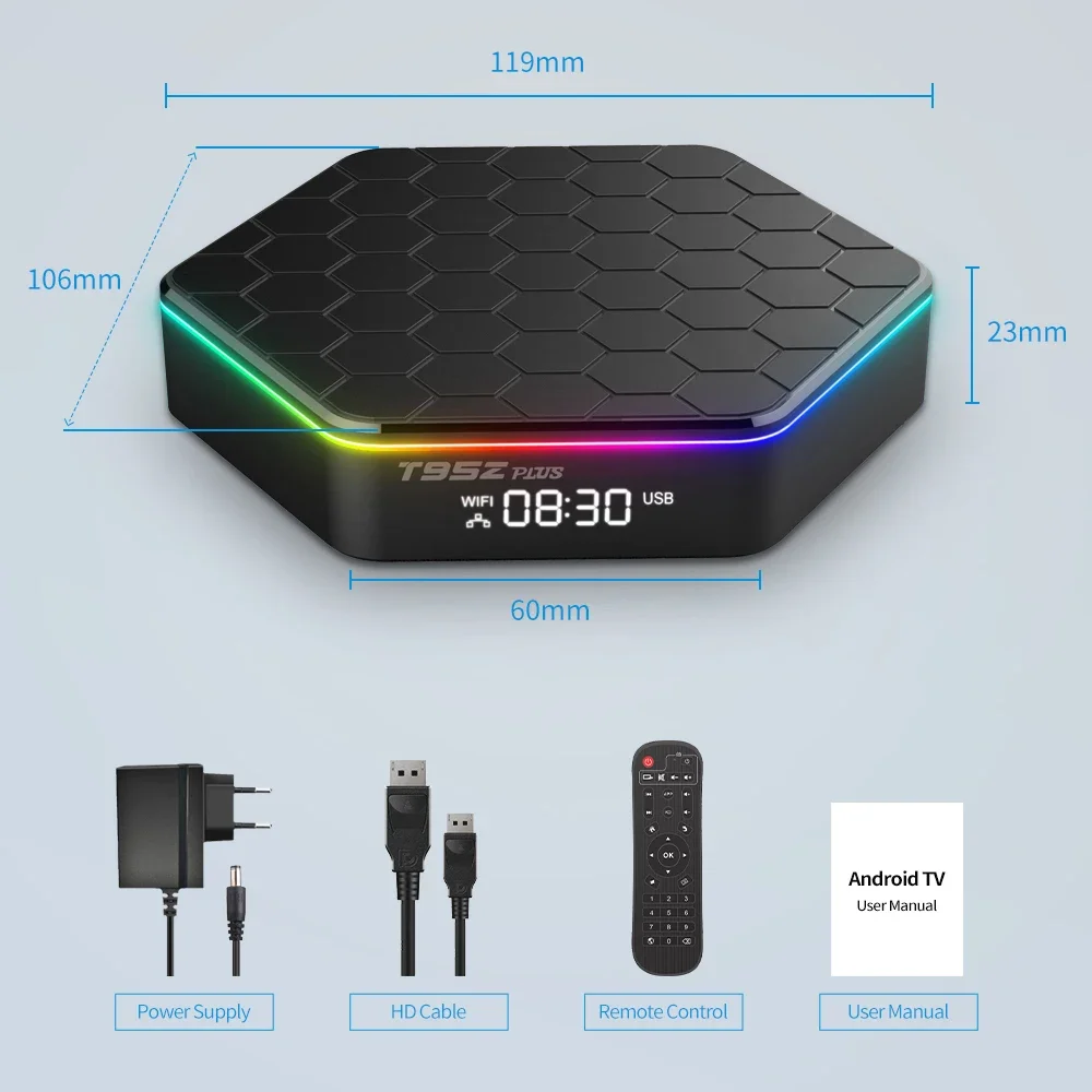 ТВ-приставка T95Z PLUS, Android 12, Allwinner H618, 6K, 2023 ГБ, 4 + 32/16 ГБ, BT5.0, H.265