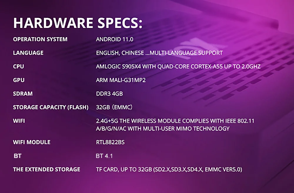 1. Процессор: четырехъядерный процессор Amlogic S905X4 ARM Cortex-A55