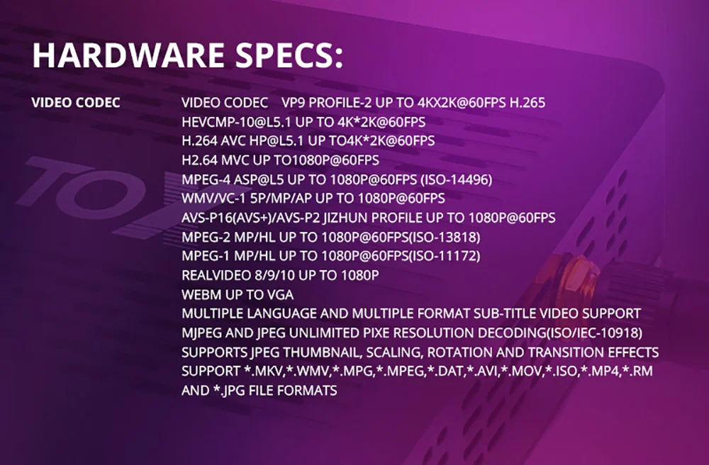 -WMV/VC-1 SP/MP/AP до 1080P @ 60fps