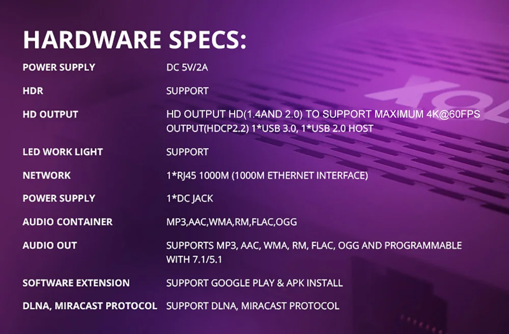 Процессор: Amlogic S905X4 с четырехъядерным Cortex-A55 до 2,0 ГГц