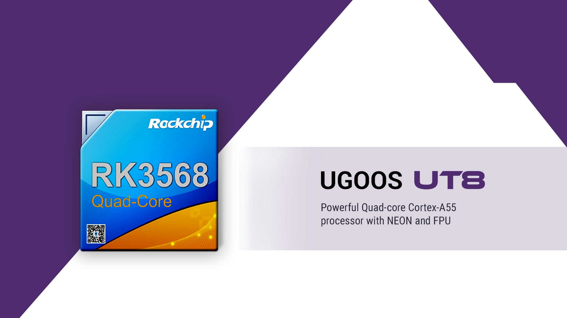 Коробка серии Ugoos UT8 с процессором RK3568, это настоящее 64-битное ядро и система. Он немного мощнее, чем S905X4, и с лучшим графическим процессором, но без поддержки AV1.