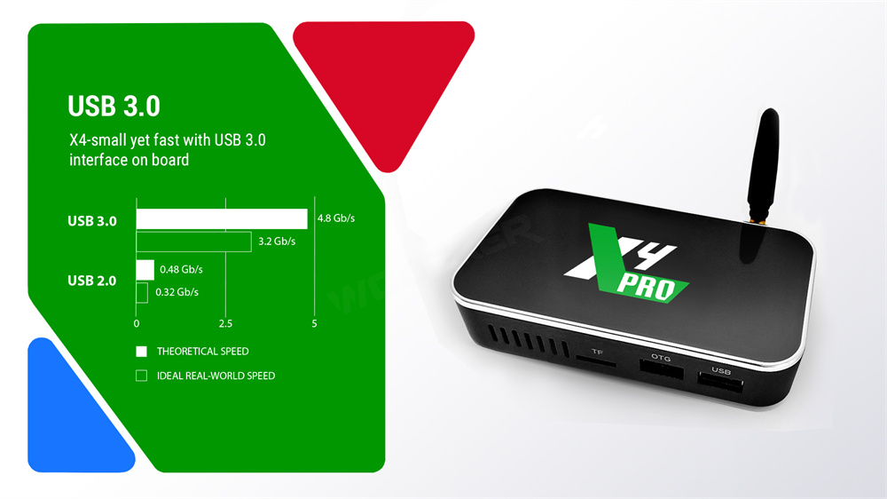 X4 Plus: 4 ГБ/64 ГБ + 2,4 ГГц/5 ГГц Wi-Fi + BT4.0 + 1000 м