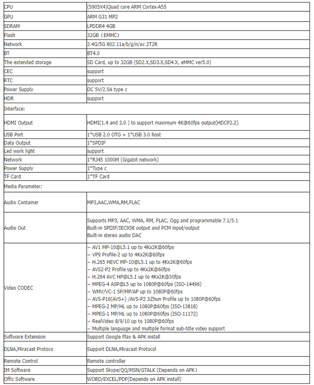 Процессор: Amlogic S905X4 четырехъядерный ARM Cortex-A55