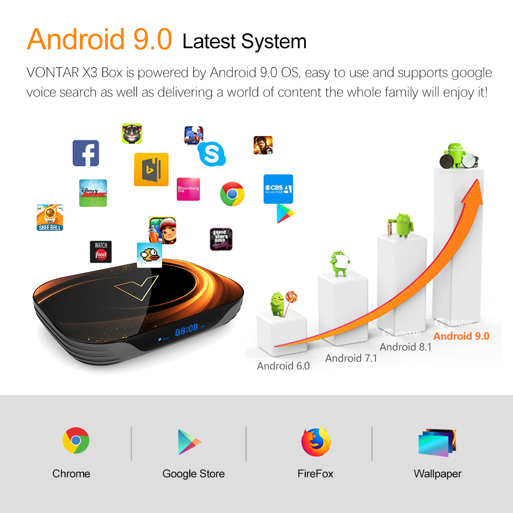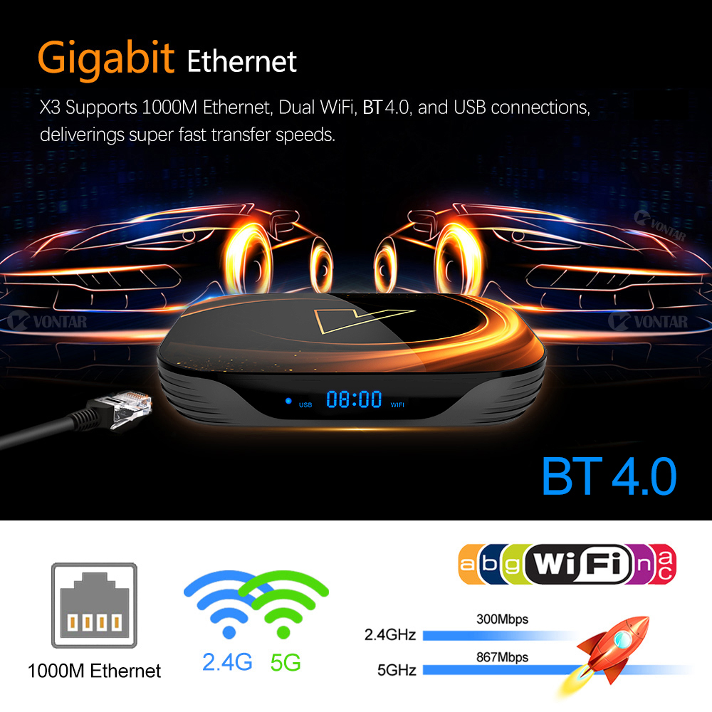 ТВ-приставка VONTAR X3, Amlogic S905X3, Android 9,0, 1000 Мбит/с, 4K, 60 кадров/с, 4 + 128/64/32 ГБ