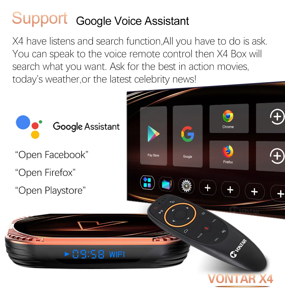 ТВ-приставка VONTAR X4, Android 11, Amlogic S905X4, 4 Гб, 128 ГБ, 32 ГБ, 64 ГБ, 1000 Мбит/с, Wi-Fi, 4K AV1, Google Player, медиаплеер, ТВ-приставка