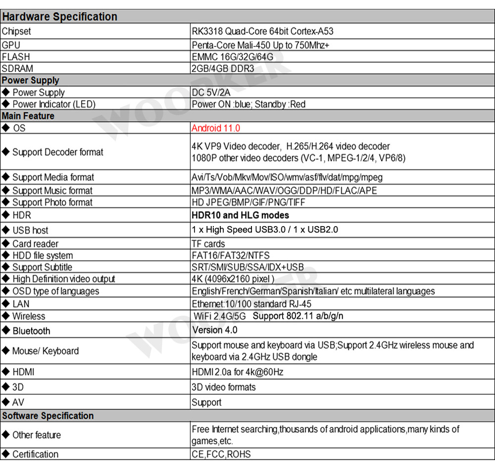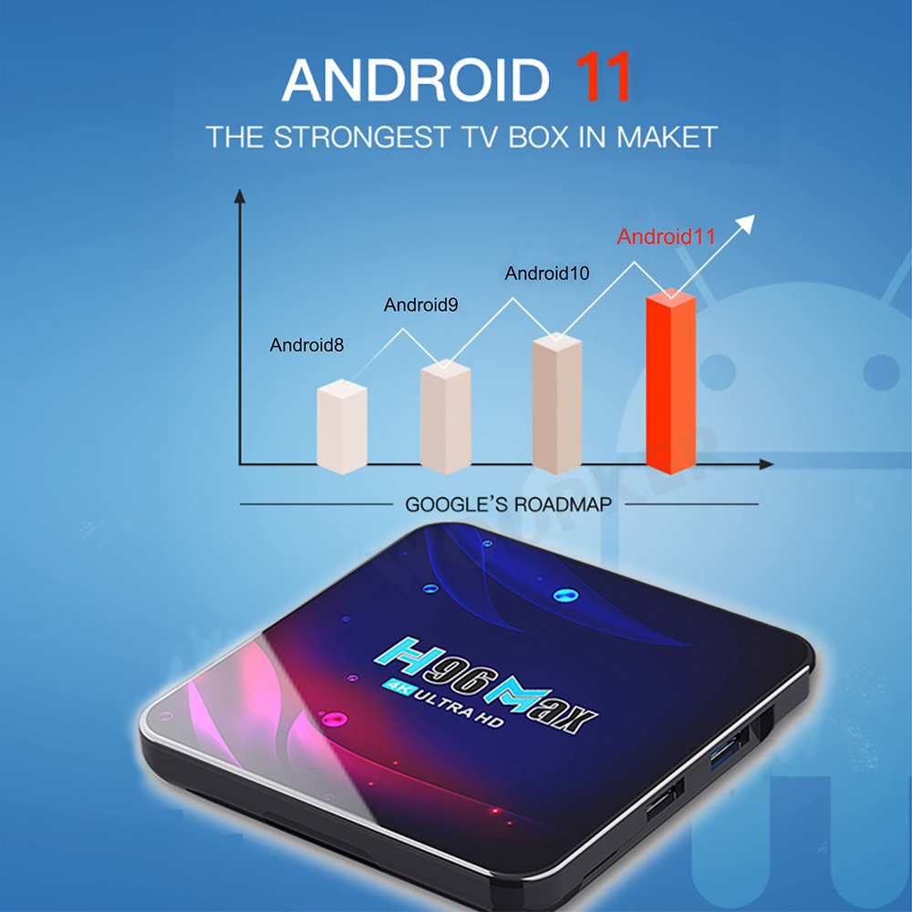 ТВ-приставка Woopker H96 Max, V11, Rockchip RK3318, Android 11, двойной Wi-Fi, 2,4 ГГц/телефон, BT 4,0, 4K, HDR, 10,0