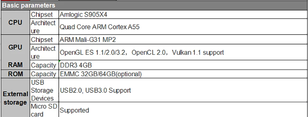 Содержимое упаковки: ТВ-бокс × 1, пульт дистанционного управления × 1, кабель HDMI × 1, руководство пользователя × 1, адаптер питания × 1