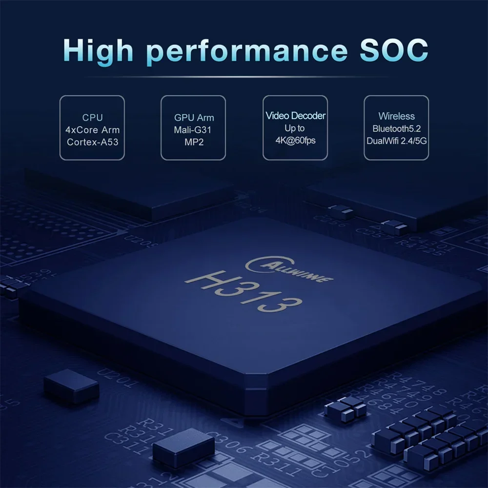 Четырехъядерный процессор H313 cortex-A53 частота: 1,5G