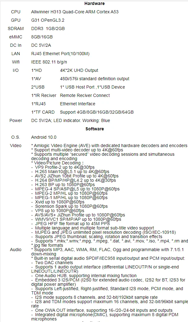 1, Allwinner H313 четырехъядерный ARM Cortex A53;