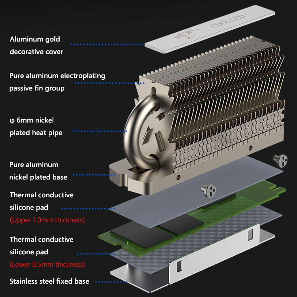 Радиатор SSD Антигравитационная тепловая трубка Радиатор SSD Алюминиевые ребра Двойное соединение, сваренное для твердотельного накопителя M.2 2280