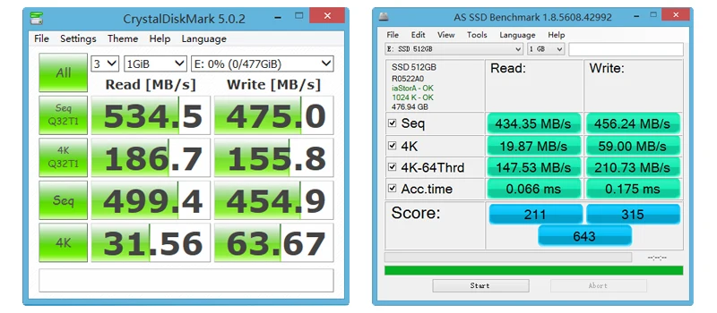 Наш тест скорости на рабочем столе определенной конфигурации, интерфейсе sataIII (Используйте адаптер NGFF для sata), кабеле sataIII, без операционной системы. Результат теста только для справки. Твердотельный накопитель SATA3.0 протестирован на интерфейсе SATA2.0 и кабеле SATA2.0, скорость ниже 300 МБ/с. Ноутбук будет ниже, чем настольный компьютер, и будет нестабильным.