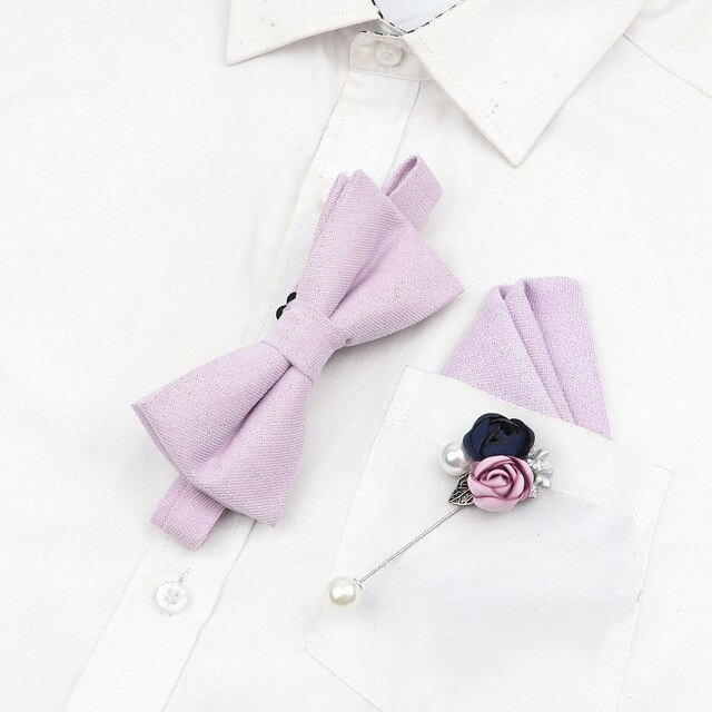 Твердые Цвет 7 см хлопковый галстук-бабочка брошь в виде Розы платок комплект мужские Романтическая Свадебная вечеринка костюм-смокинг для детей подарок аксессуары для галстука