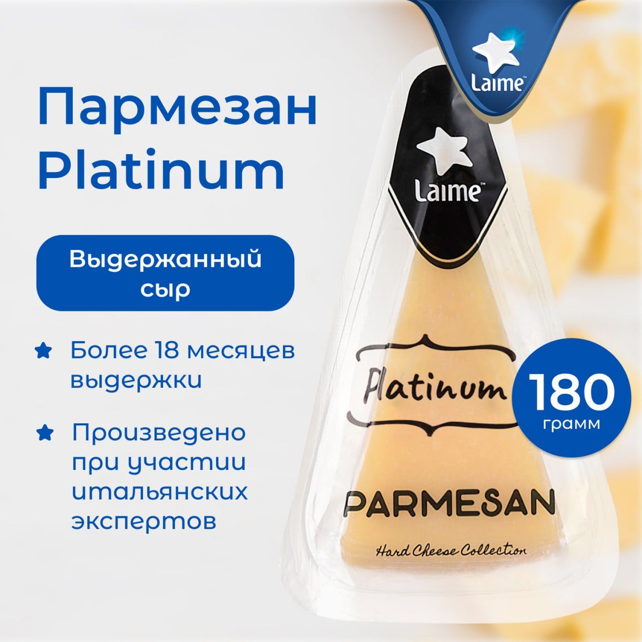 Твердый сыр Пармезан PLATINUM Laime, 40%, выдержка более 18 месяцев, 180 г
