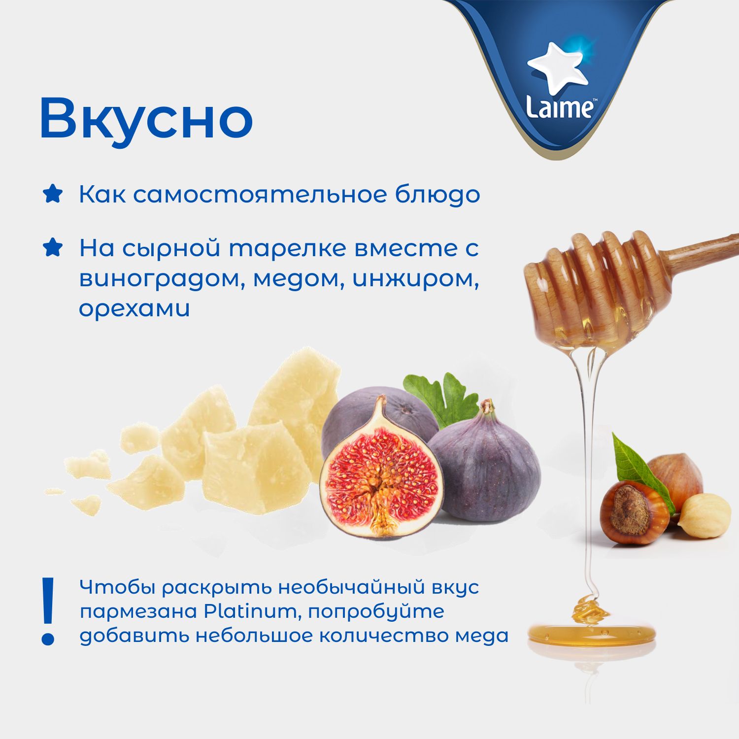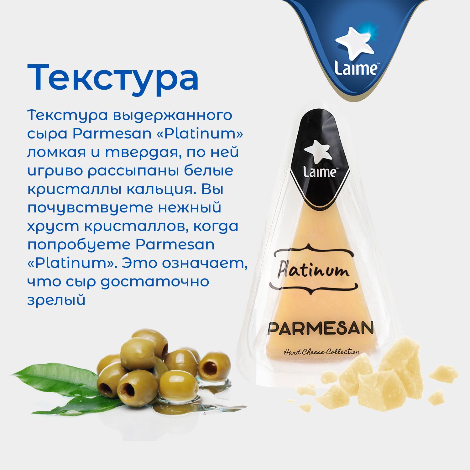 Описание: Твердый сыр Пармезан PLATINUM с более чем 18-месячной выдержкой имеет яркий вкус и аромат, которые совершенствуются в течение длительного периода созревания. Каждый кусочек сыра тает во рту, оставляя пикантное послевкусие. Твердый сыр от бренда Lime варят из отборного молока, а традиционные методы производства и строгий контроль качества гарантируют безупречность и высокую степень созревания. Он cтанет настоящей находкой для ценителей высококачественных сыров и подарит незабываемые впечатления. Выдержанный Пармезан - идеальный спутник для самых изысканных блюд. Этот сыр прекрасно дополняет пасту, салаты, супы и мясные блюда, а также отлично сочетается с вином, фруктами и орехами. Рекомендуем попробовать канапе по классическому рецепту: Пармезан нарезать кубиком 1х1см, виноград промыть и отделить от веточек. Целые ядра ореха разделить на половинки. Собираем канапе: сначала на шпажку нанизываем сыр, затем виноград и завершаем канапе грецким орехом.