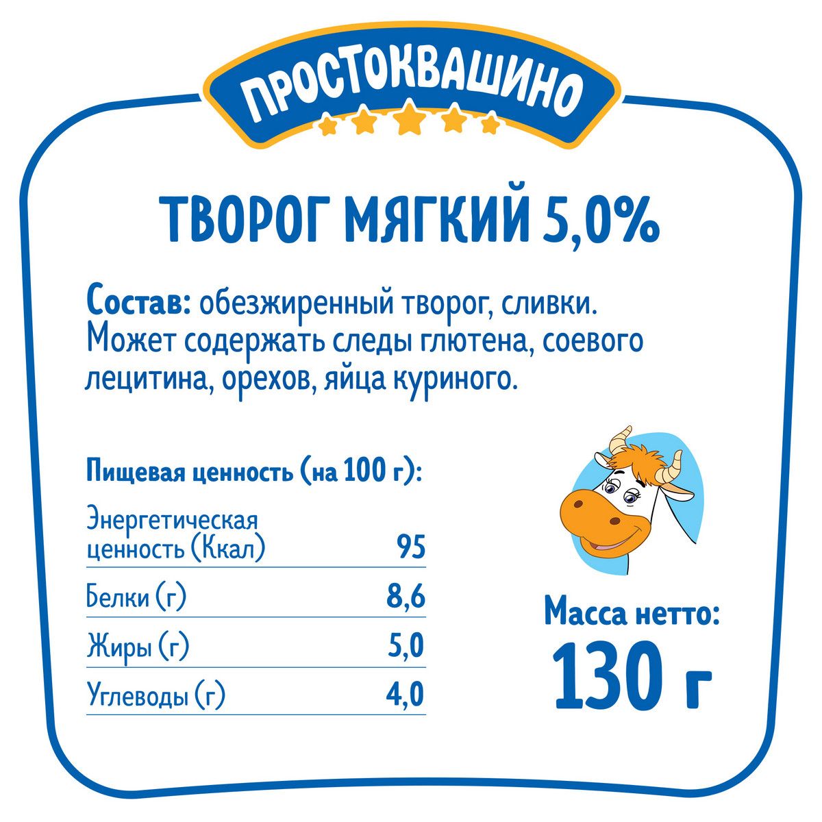 Творог мягкий Простоквашино натуральный 5%, 130 г