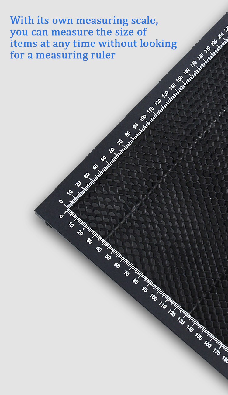 Мы добавили четкие метки измерений на краю лазерного слоя. Маркировка измерений, которая делает его действительно полезным для размещения. Также очень удобен для измерения материалов при резке и гравировке.