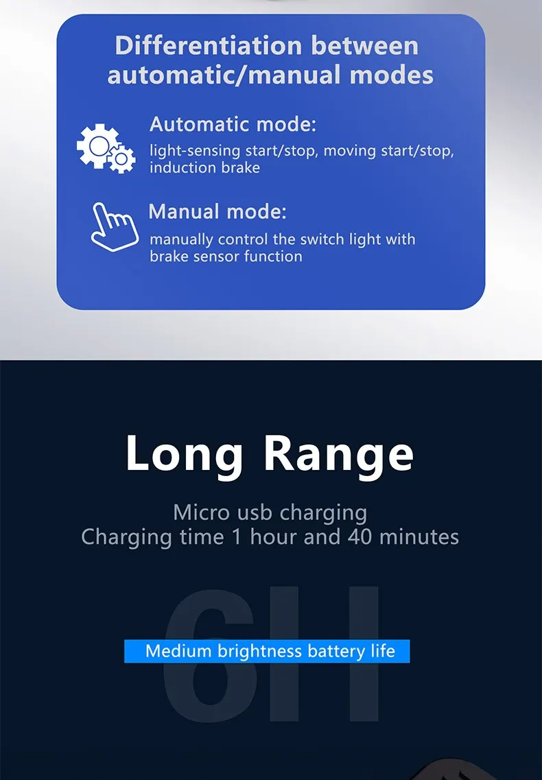 Задний фонарь переходит в состояние высокой яркости в течение 3 секунд и имеет функцию автоматического включения или выключения света.