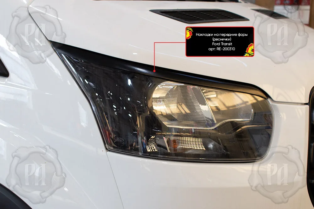 Тюнинг накладки реснички на передние фары для автомобиля Ford Transit 2014+. Деталь экстерьера молдинги для оптики аксессуар