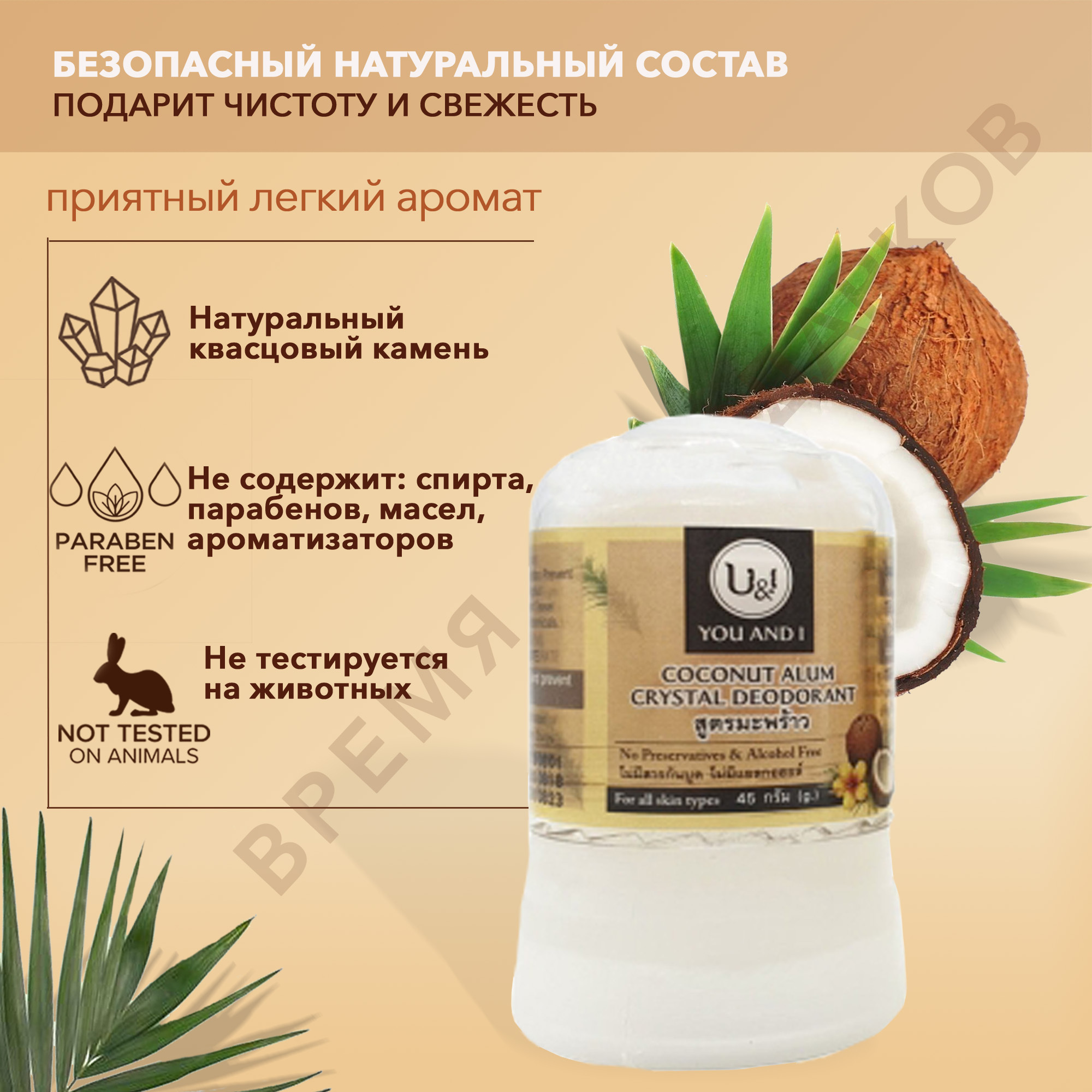 U&I Дезодорант - антиперспирант кристаллический Натуральный минеральный без алюминия кокосовый 45 г