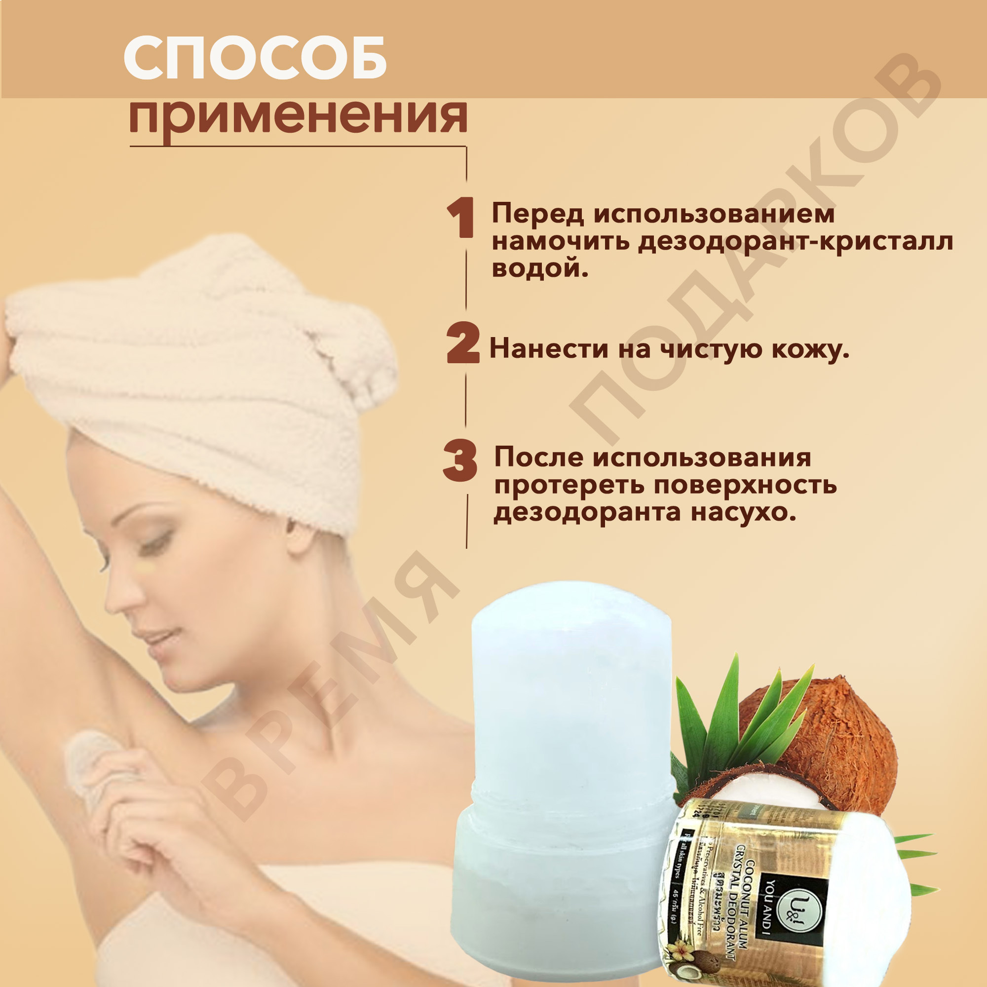 Описание: Уникальный гипоаллергенный, натуральный кристаллический дезодорант. Обладает антибактериальными свойствами, за счет которых убивает бактерии. Не содержит химии, спирта и хлоргидрат алюминия.