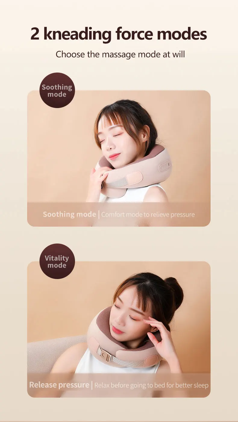 Наша U-образная массажная подушка имеет 4 узла для разминания, имитирующих массаж рук, и вы также можете испытать ощущение массажного салона дома. Как положительное, так и отрицательное разминание обеспечивают более комфортный массаж, разблокируют меридианы и снимают усталость. Опора круглой посадки, обеспечивающая всестороннюю поддержку веса шеи. Горячий компресс с постоянной температурой помогает лучше спать.