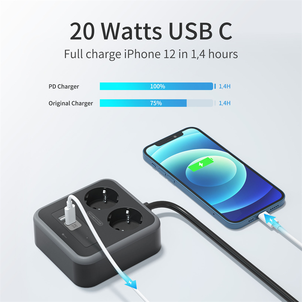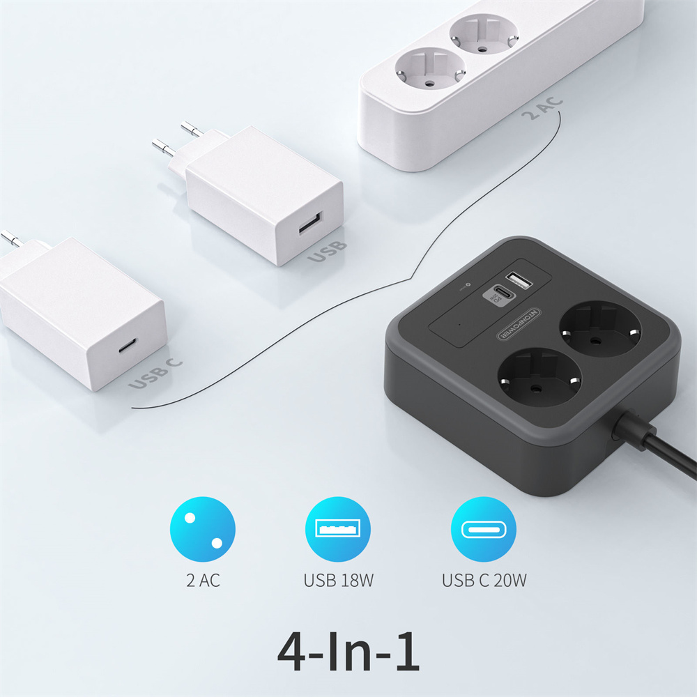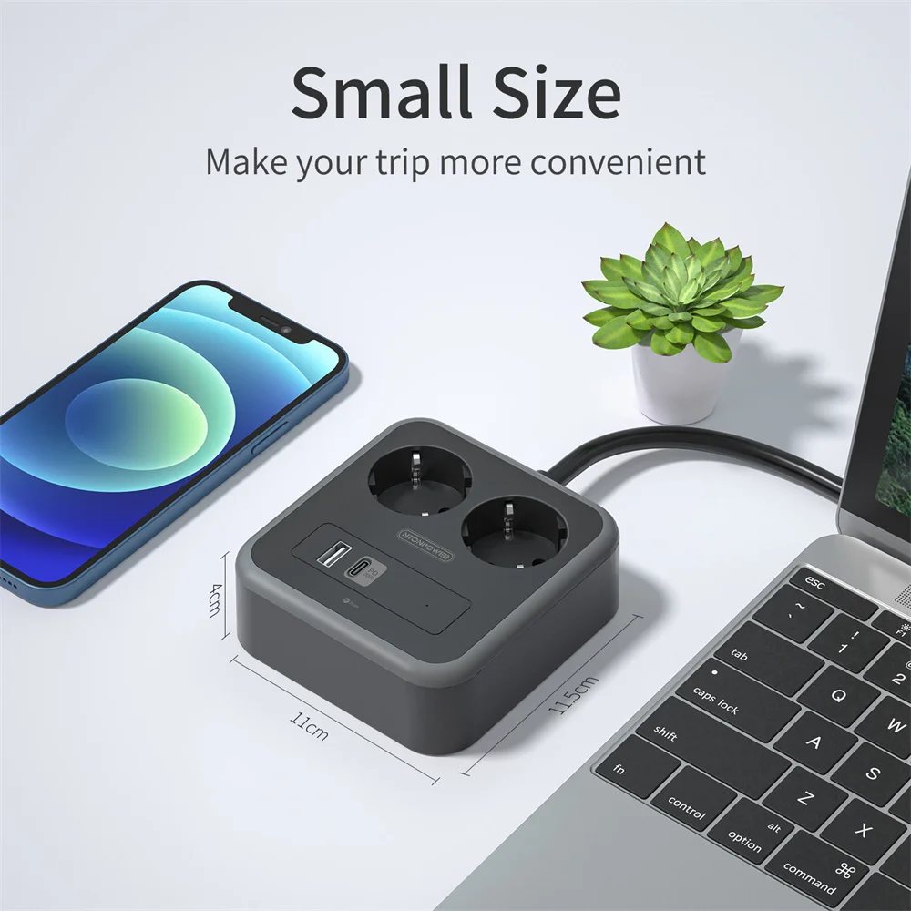 1. Изысканный дизайн и компактный размер:Удлинитель использует процесс сращивания, сочетание белого и серого делает удлинитель более деловым и модным. Размер удлинителя составляет 11,5*11*4 см, он размером с руку взрослому. Так что он не займет слишком много места в вашей сумке, когда вы возьмете ее в поездку.
